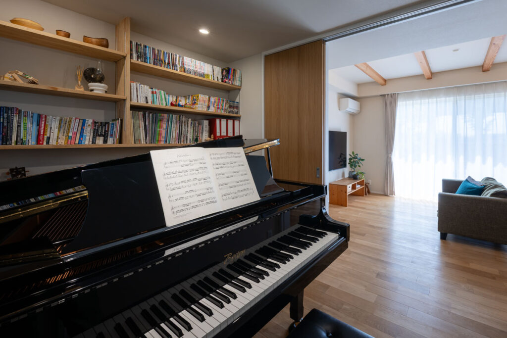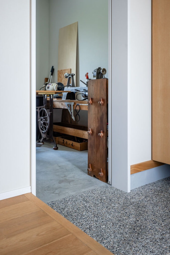 その背景にお施主様の手づくりの工芸作品を展示しています👍