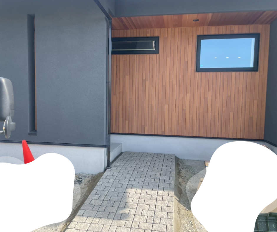 玄関までのアプローチは、こんな感じでゆるやかに!(絶賛作業中でしたので、周りを隠しています)