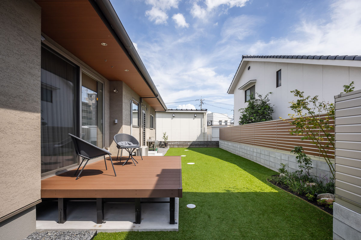 ウッドデッキや和室、子ども部屋などお子様も遊べる空間が充実した平屋です。