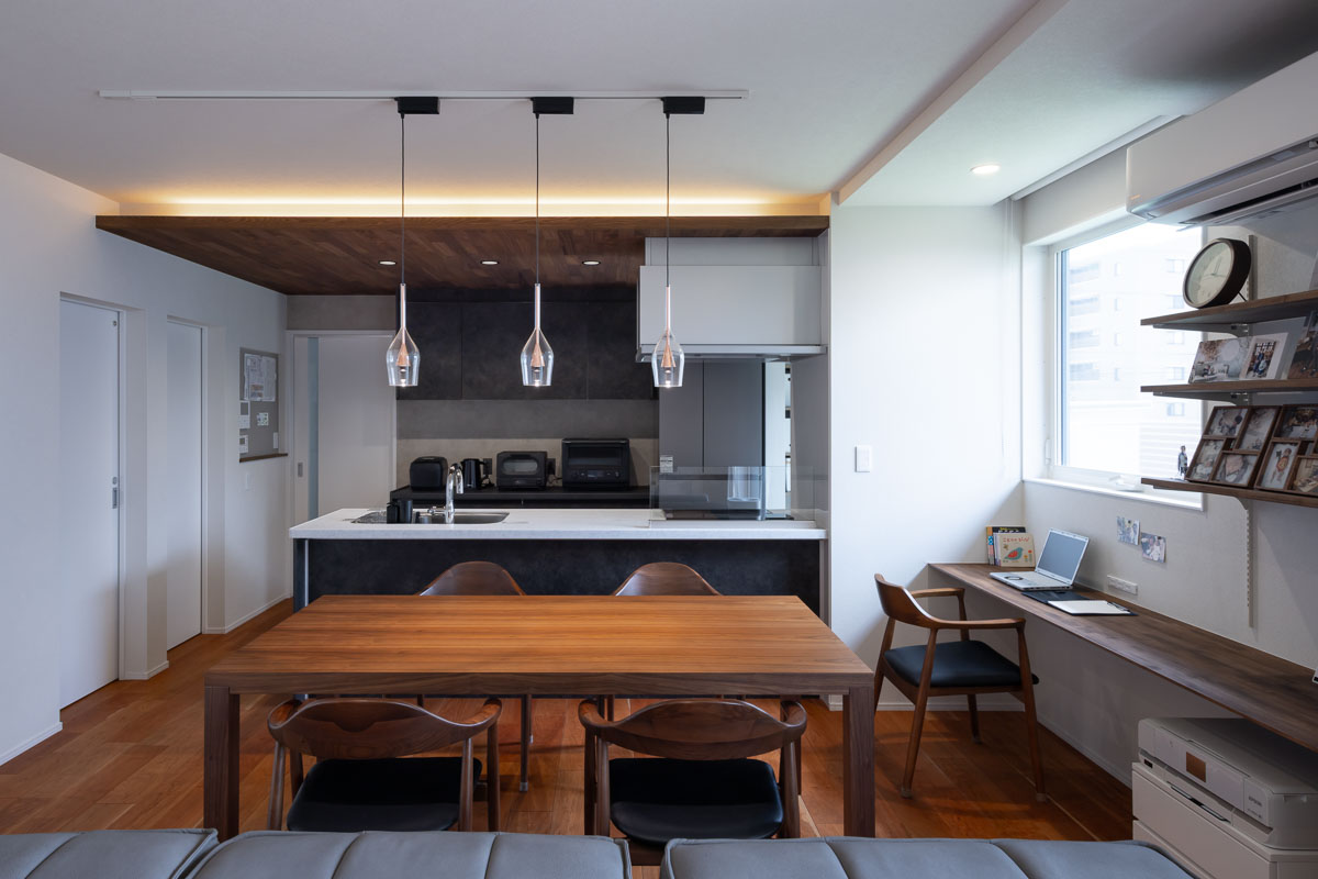 LDKは配色や照明にもこだわりおしゃれな空間になっています。