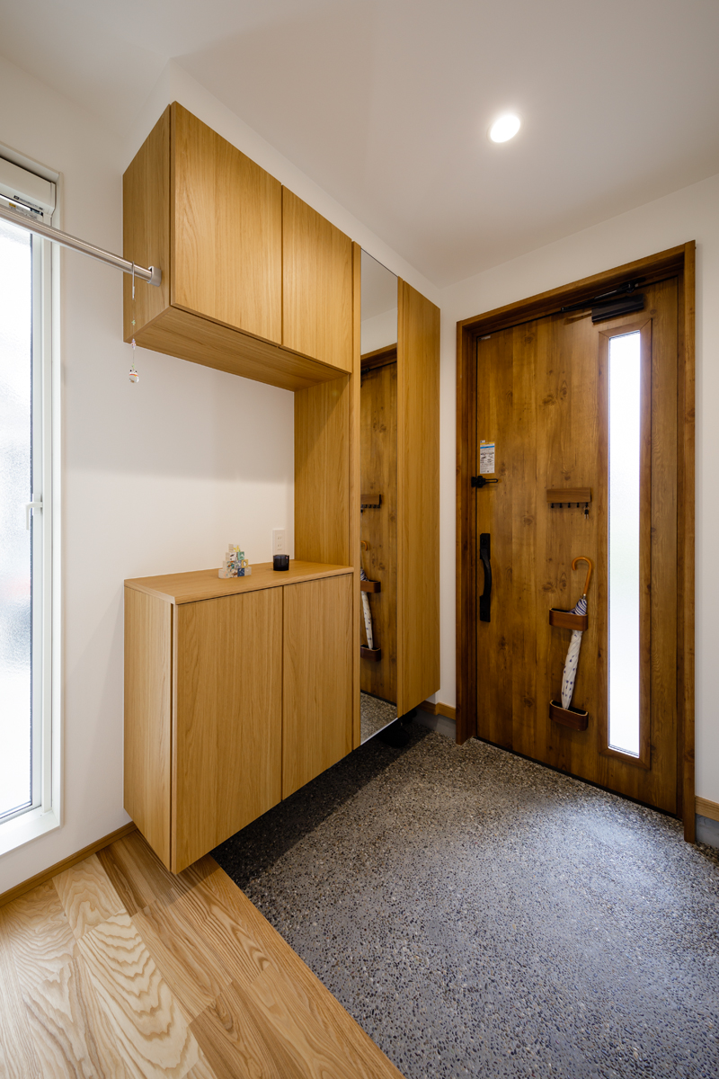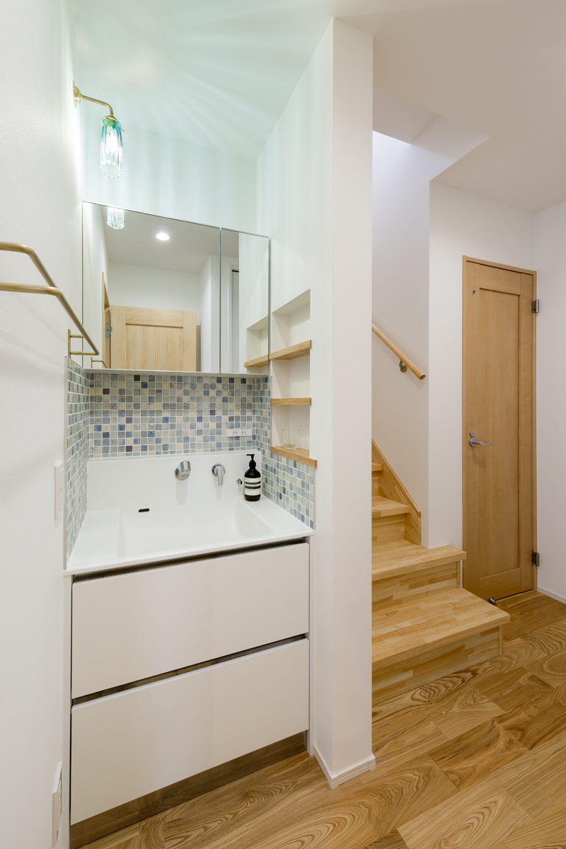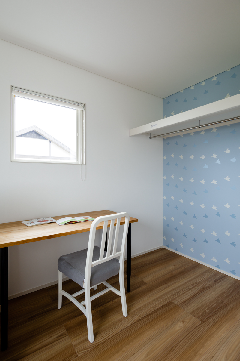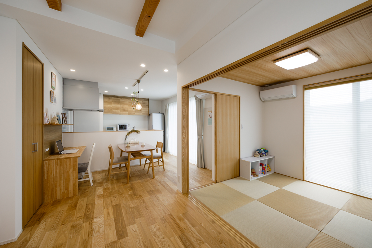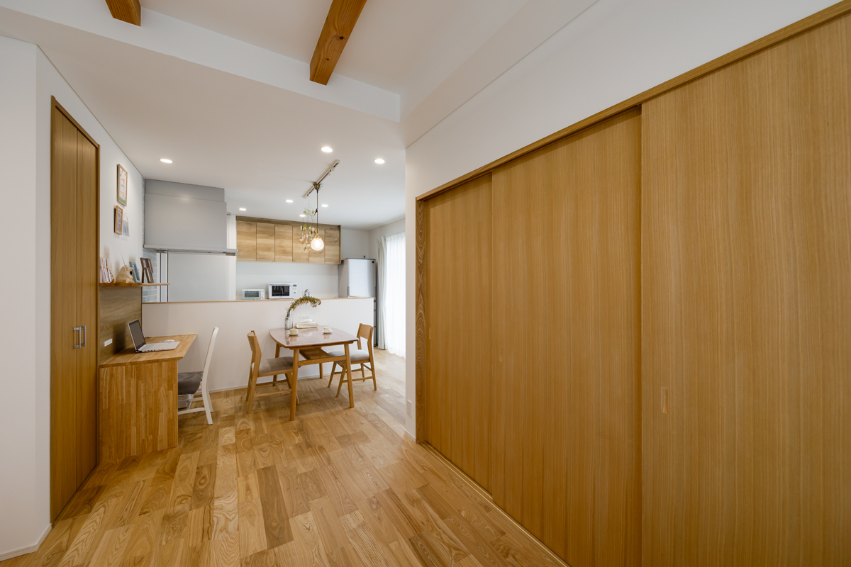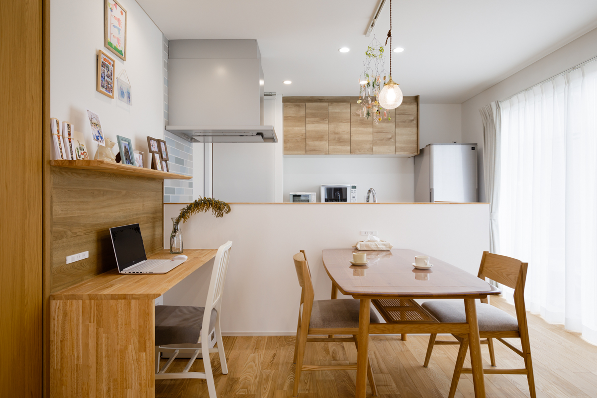 LDKのワークスペースではお子様の勉強やテレワークにと、多目的に使えるスペースを作りました。 ランドリールームには、ガス乾燥機を設置したことで家事効率も良くなり、時間にもゆとりを感じられます。