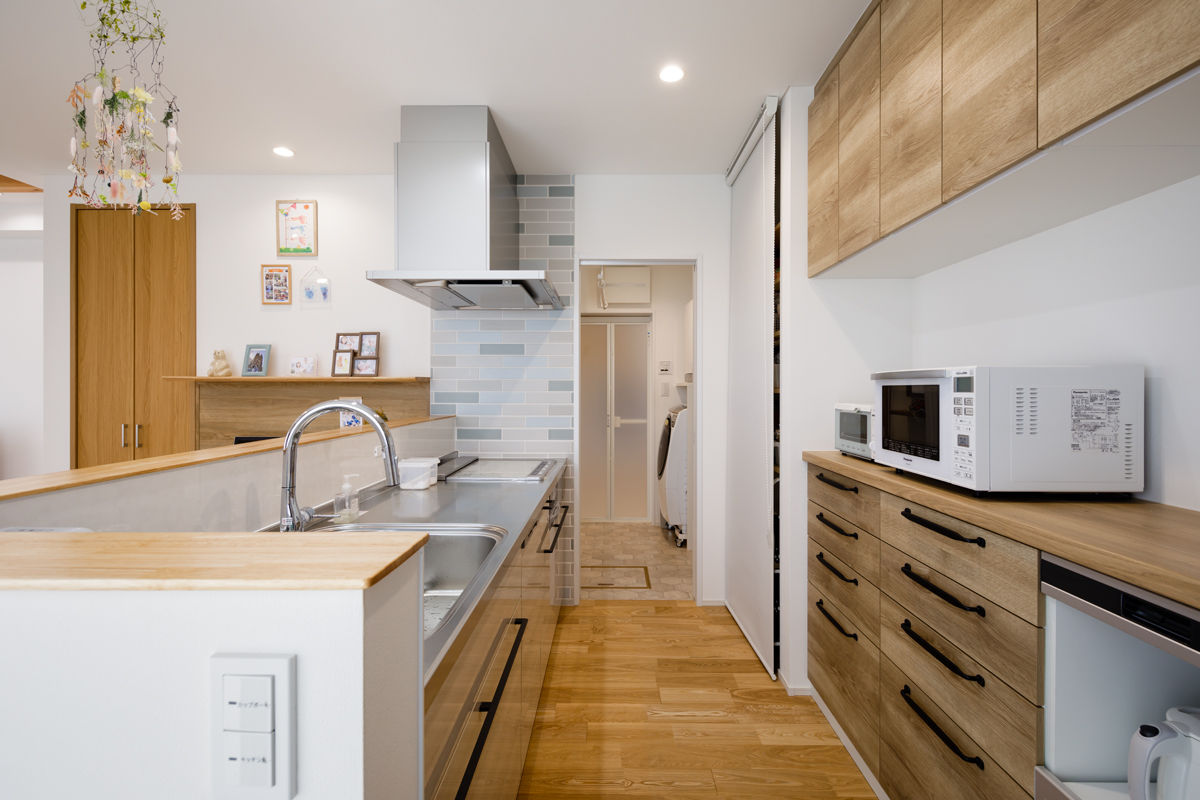 キッチンからはLDK・和室を見渡すことができ、家族を感じながら生活することができます。