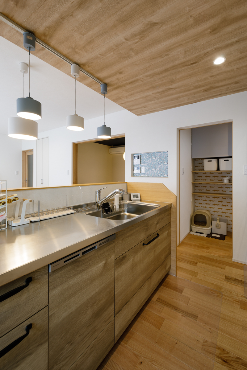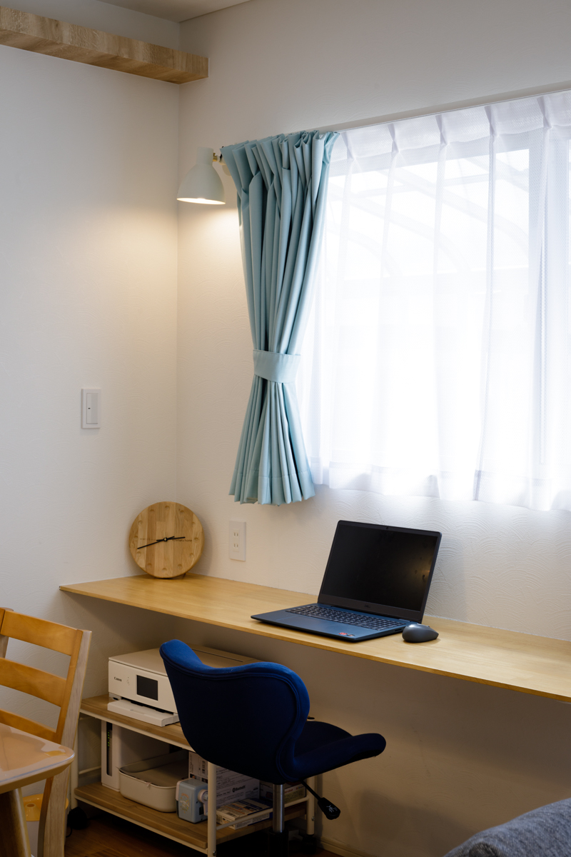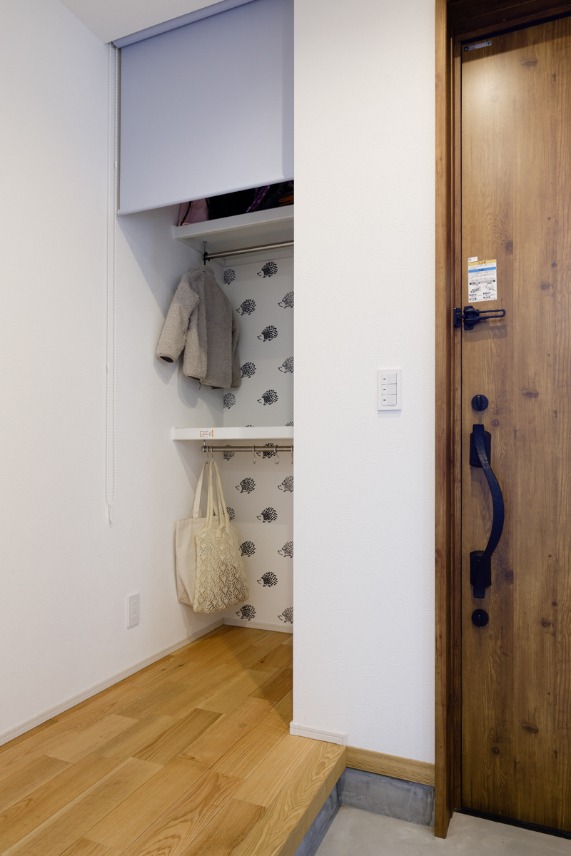 アクセントクロスが可愛らしさを引き立て、一体感のある住まい全体が魅力的な印象の住まいです。