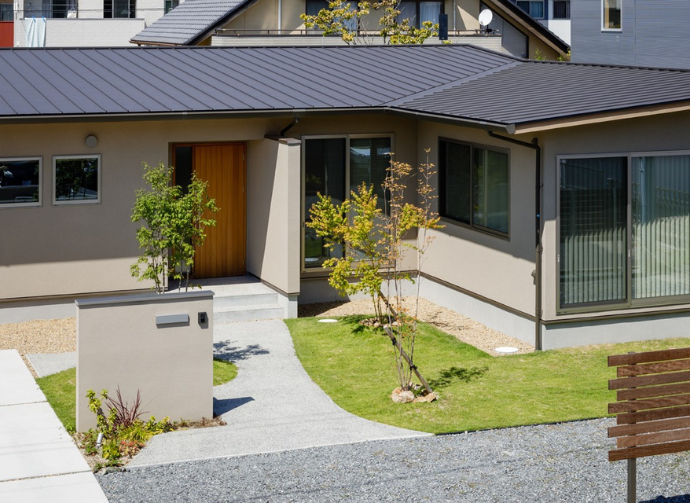 勾配天井と大空間リビングが作り出すゆとりとくつろぎのある平屋の家