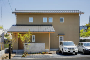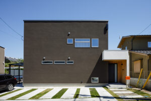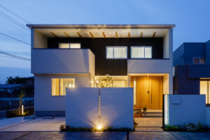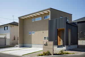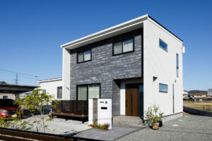 スタイリッシュな外観が映える、木の温かみが感じられるお家